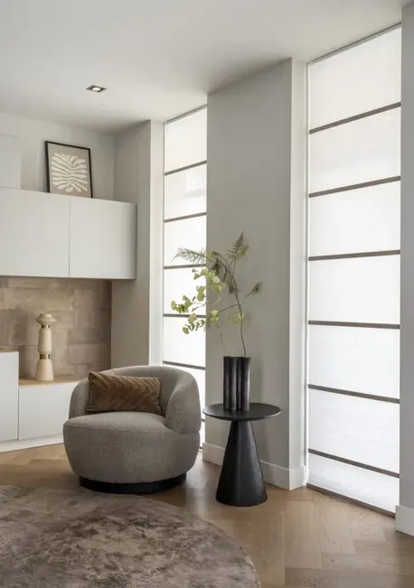 Elke woning en elke situatie vraagt om een andere oplossing. Wij helpen je bij het kiezen van het juiste type raamdecoratie - of dat nu verduisterend, lichtdoorlatend of volledig op maat gemaakt is. Zo weet je zeker dat het mooi en functioneel is.